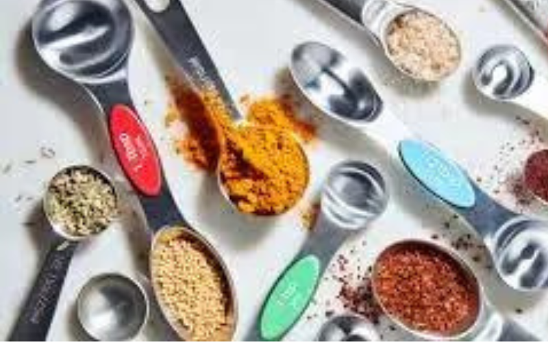 A standard measuring spoon set usually includes 1/4 teaspoon, 1/2 teaspoon, 1 teaspoon, and 1 Tablespoon.