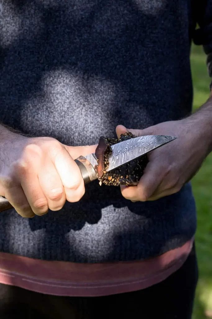While someone slices biltong with a knife, the fire has been burning since halftime. Now, everyone is gathered around, enjoying their wine, whisky, or Klippies and coke (brandy and coke). Music is playing, people are laughing and chatting. When Kurt Darren’s songs start, some people roll their eyes, while others start dancing.
